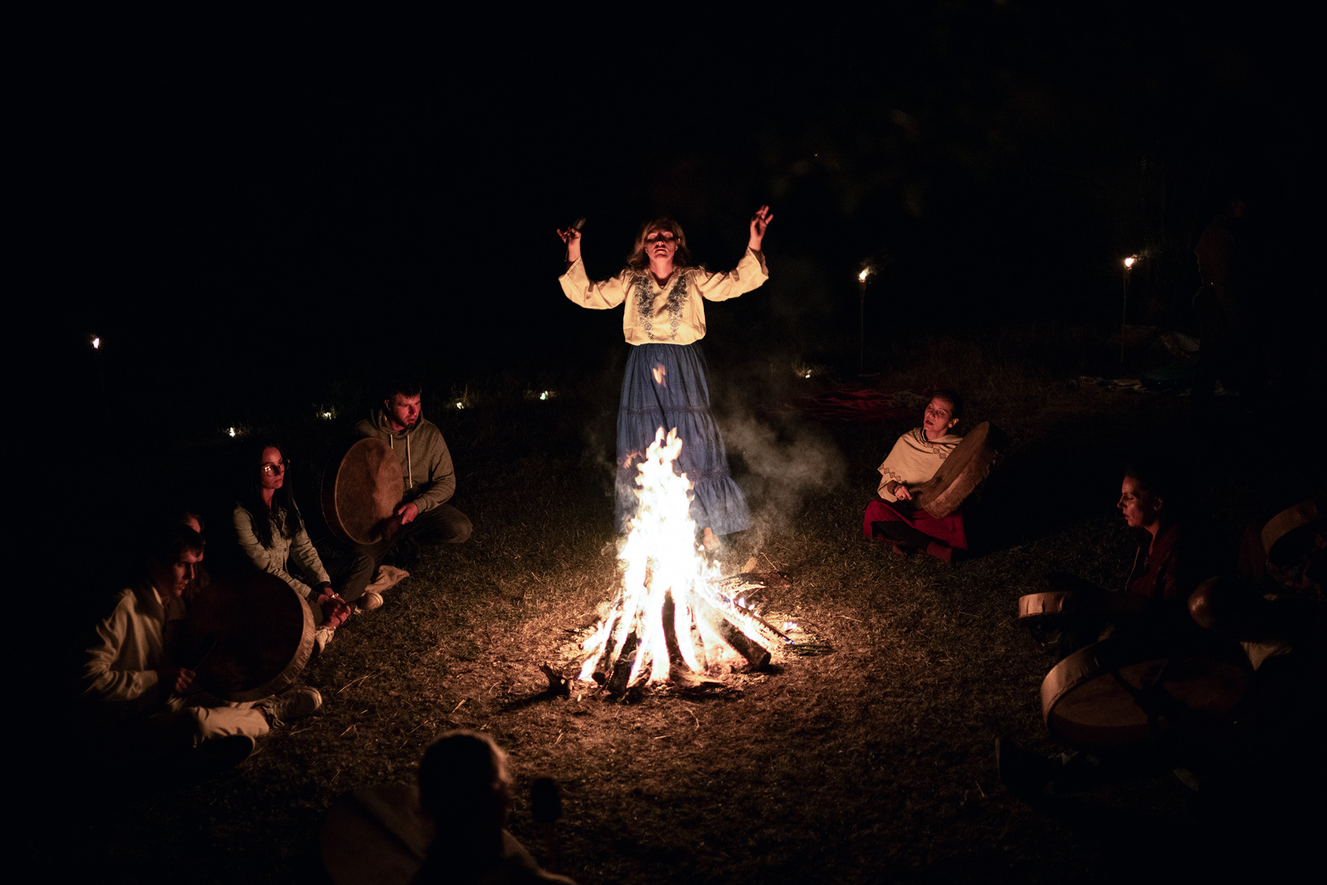 Rituals and tools bridge the visible and invisible worlds, with ceremonies timed to astronomical events like solstices and equinoxes. Practices include retreats, offerings, trance induction via trance breathing, sweat lodges, trance dance, fire-walking, drum circles, and labyrinth walking to achieve deep transformative experiences.